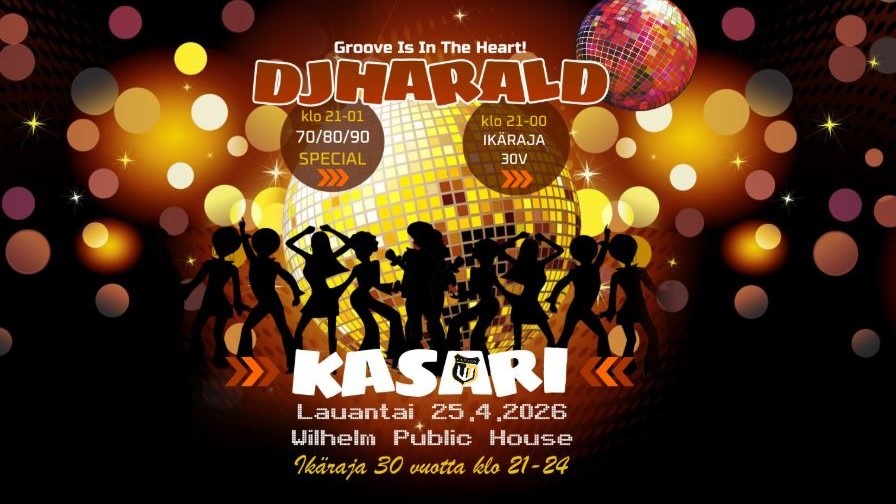 Fri 6/3Gastropub EinoDj Harald - Aikamatka Kasari Special Wilhelmissä 25.4.