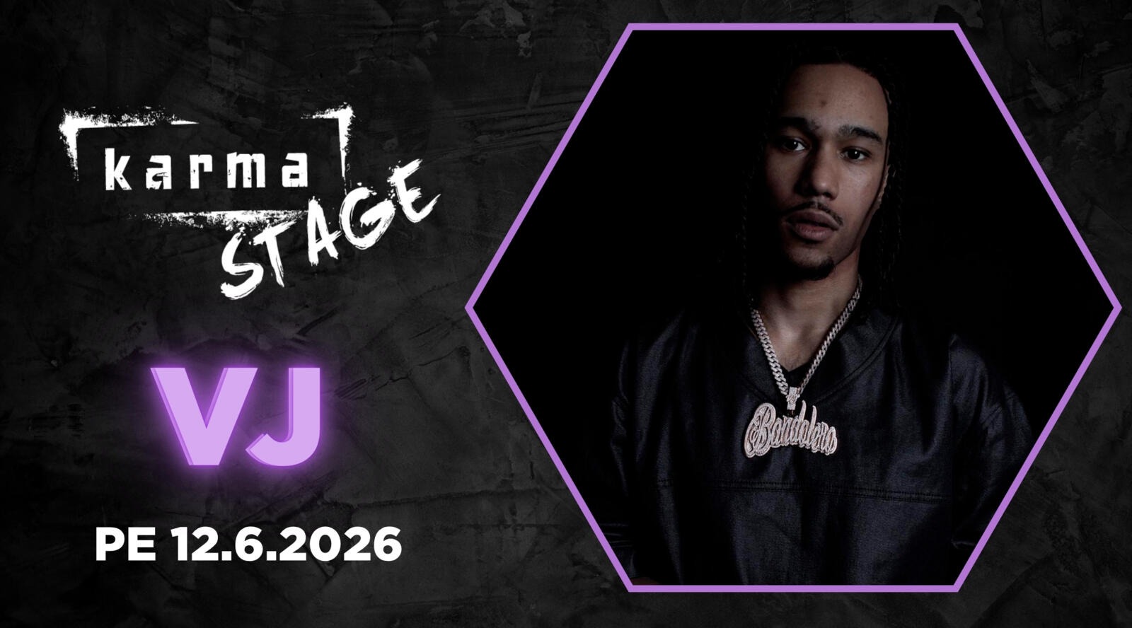 KARMA STAGElla perjantaina 12.6. VJ! VJ:n tunnetuimpia hittejä ovat Vastustaa sekä versiointi Cheekin kappaleesta Avaimet mun kiesiin.