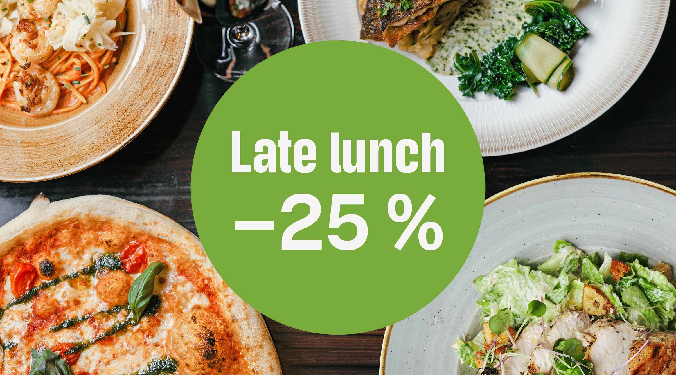 Late lunch -iltapäivissä –25 % pääruoasta – Katso ravintolat!