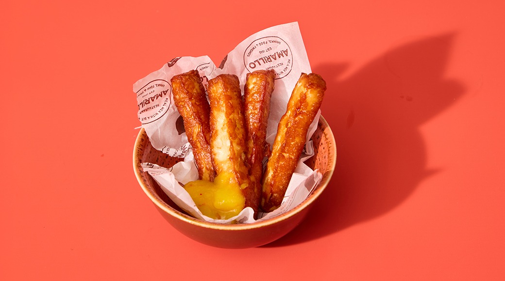 Tortillataskud grillbroileri rinnafilee, küpsetatud kitsejuustu, vürtsika majakastme Paholaisenkastike, pico de gallo värske tomati salsa, värske salati ja tomatiga, lisandiks friikartulid ja Amarillo One & Only jalapeno-küüslaugumajonees