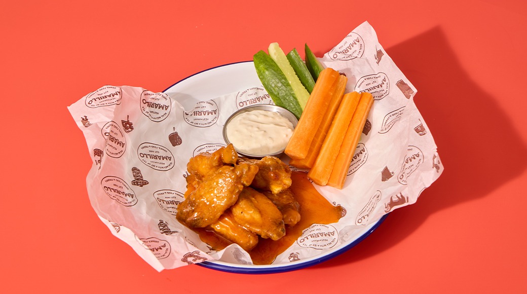 Mozzarella-pulgad, jalapenopopperid, maisiviilud, 6 tiivakest valitud kastmega, bataadifriikad, kurgi- ja porgandipulgad ning blue cheese- ja chimichurri-dipikaste
