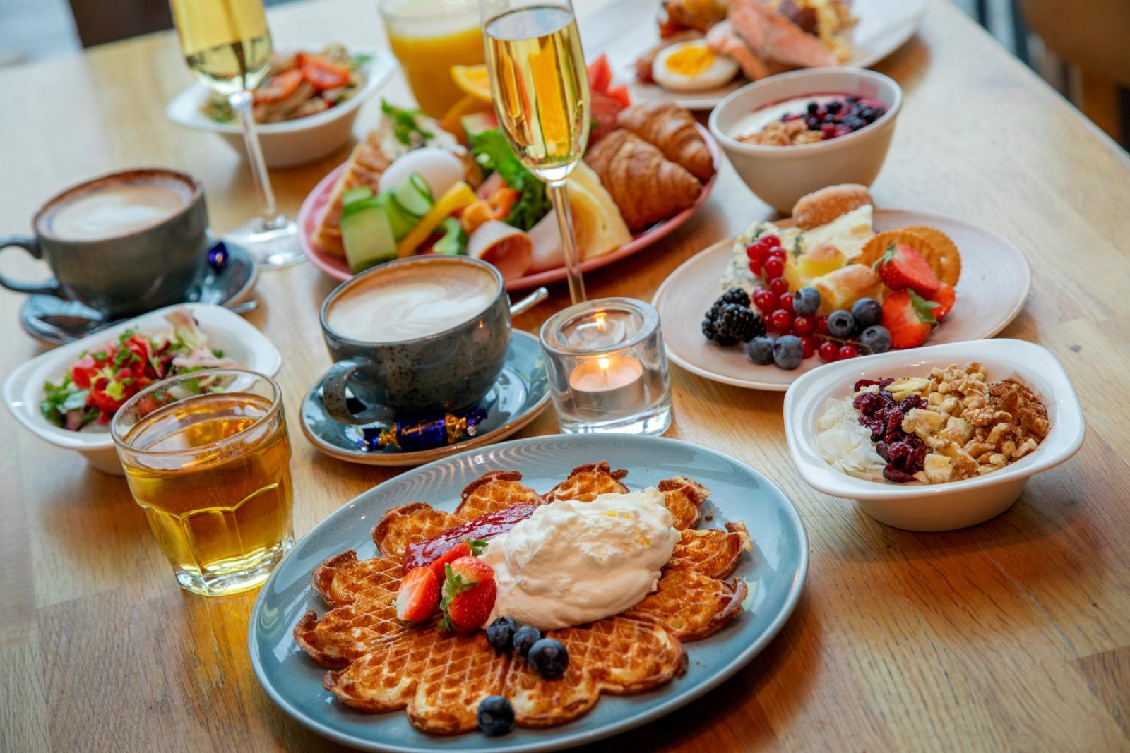 Huomioithan, että Puiston Brunssin sisältö saattaa vaihdella sesongin ja saatavuuden mukaan, mutta on aina yhtä runsas ja herkullinen!