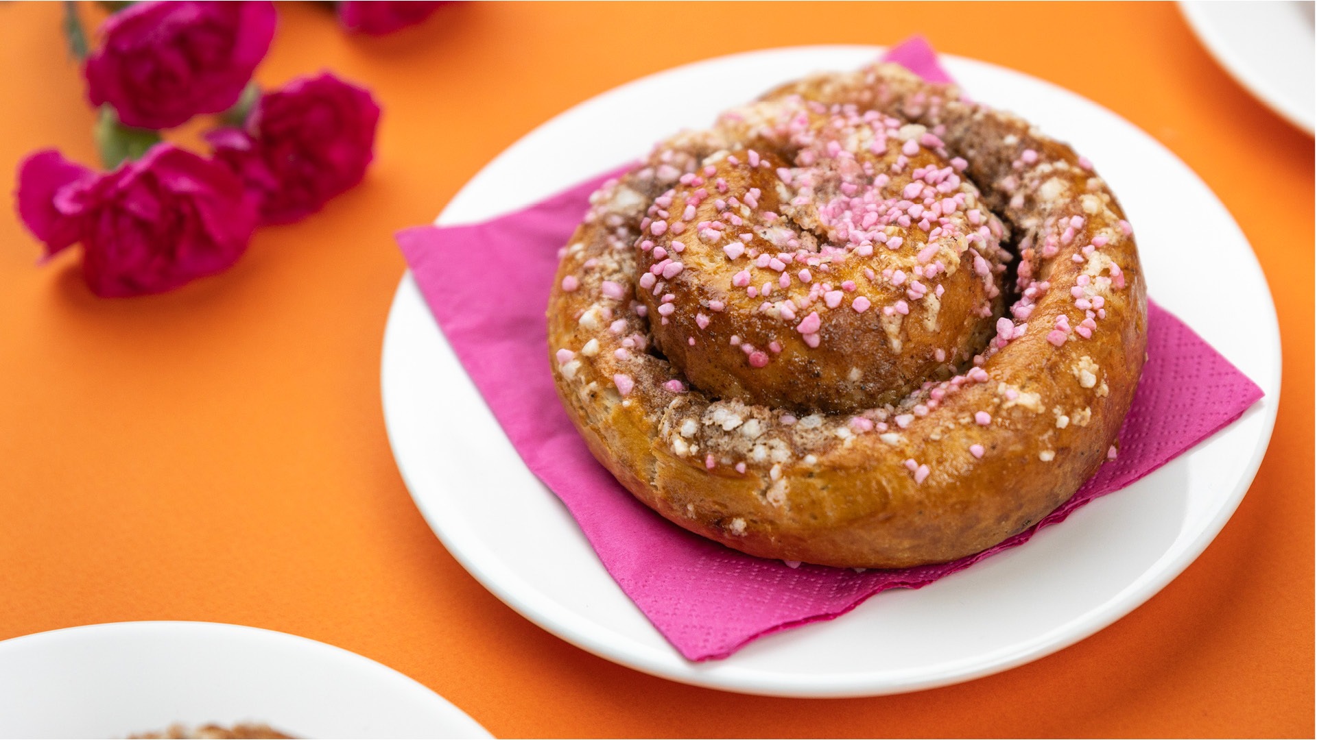 Lokakuussa Hämeenmaan kahviloissa Roosanauhapulla & kahvi/tee yhteishintaan 6,10 € (norm. 7,00 €). Tarjous voimassa 1.–31.10.2025.