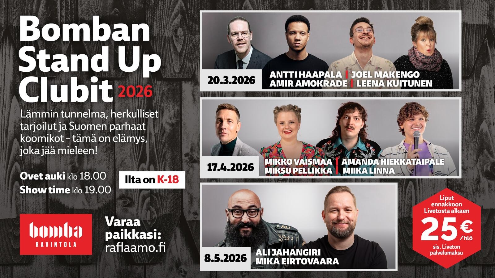 Kutsumme sinut Bomban talolle nauramaan sydämesi kyllyydestä Bomban Stand Up Club-illoissa.