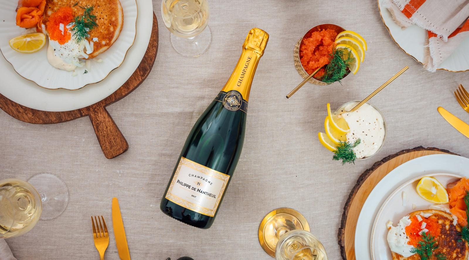 Juomaksi blinien seuraksi sopii erinomaisesti Philippe de Nantheuil Brut Champagne.