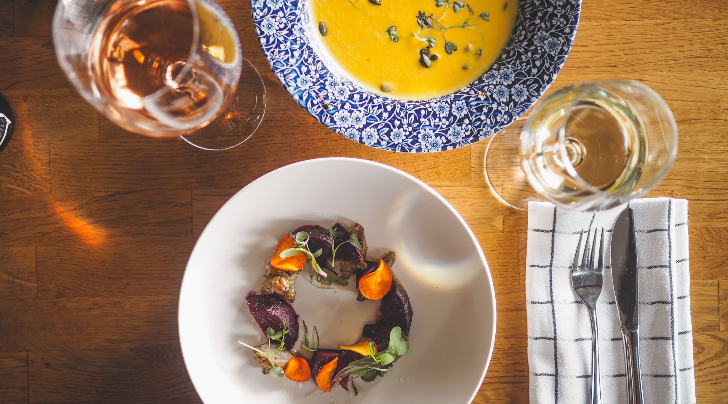 Menukokonaisuudet juhlistavat suomalaisen luonnon puhtautta ja pohjoisia makuja. Annoksissa korostuvat selkeät, kotimaiset raaka‑aineet ja huolella valitut lähituotteet. Kokonaisuus on raikas, vastuullinen ja aidosti suomalainen makuelämys.