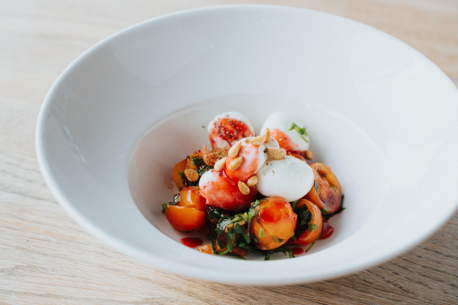 Tomaattisalsa, vadelmasiirappi, pinjansiemen