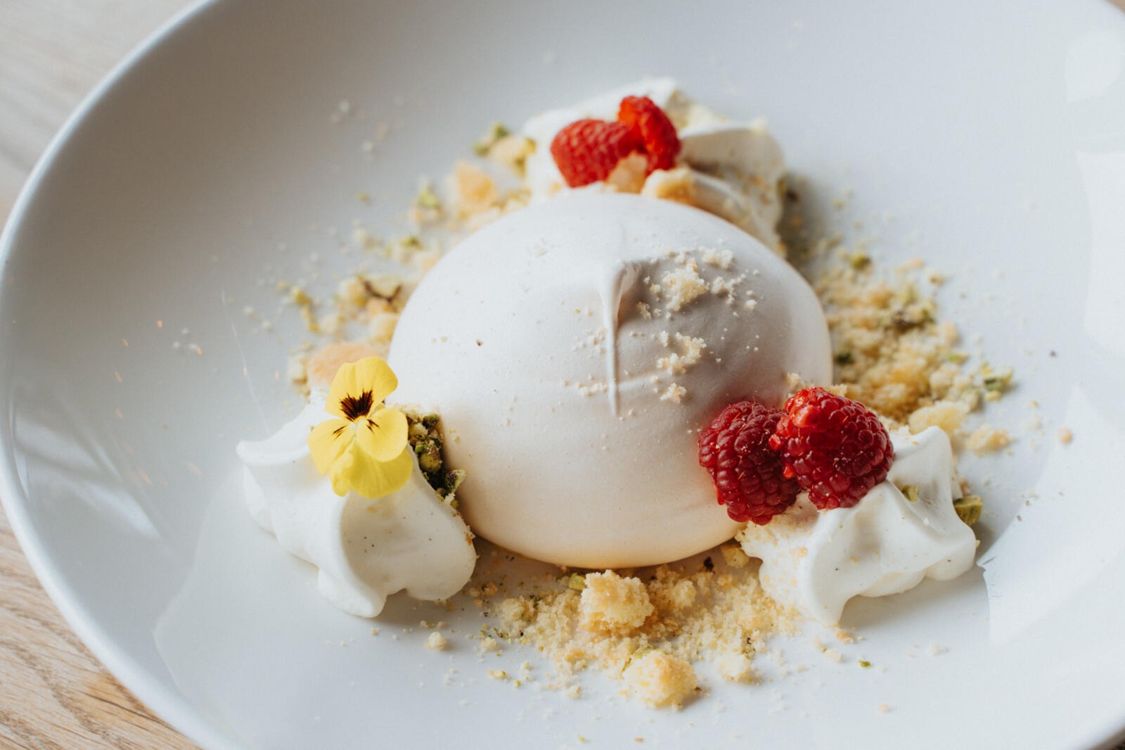 Härän sisäfilee, keltuaisgeeli, paahdettu pippurimajoneesi, salottisipuli, parmesaani