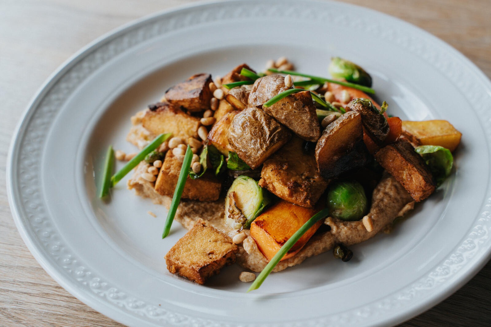 Peruna, porkkana, tofu, herne, ruusukaali, kukkakaali, pinjansiemen