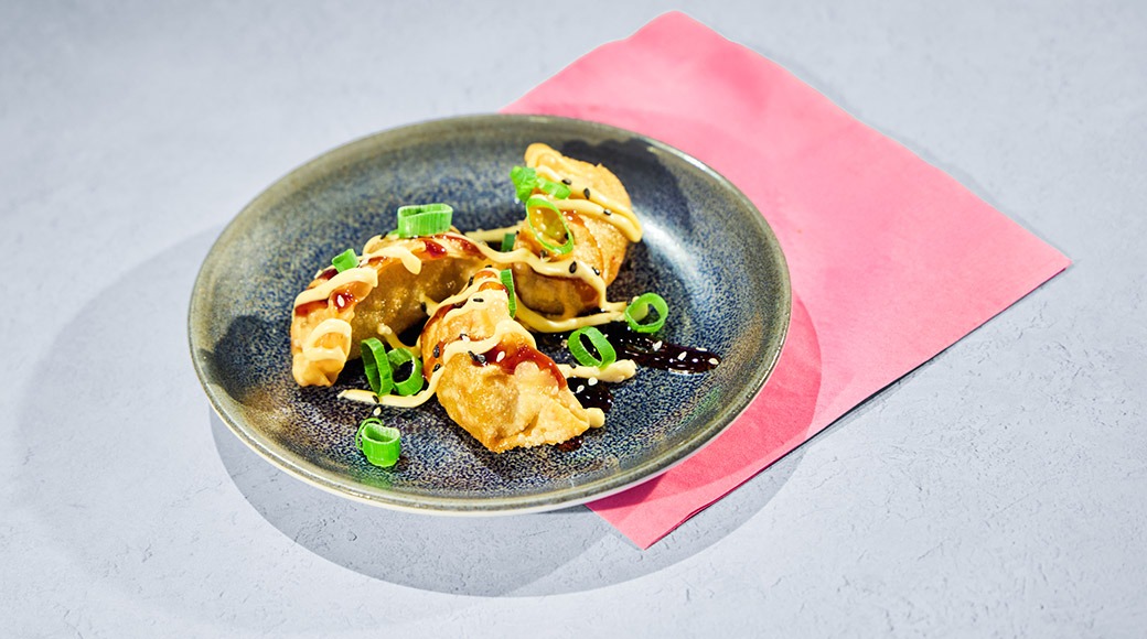 Kulhot Kulhot Dumplingseja, broccoliinia, sydänsalaattia, rucolaa, kaalia, mummonkurkkua, pikkelöityä fenkolia ja chiliä, valkosipulileipää, guacamolea, teriyaki-kastiketta, kikhernepopcorneja