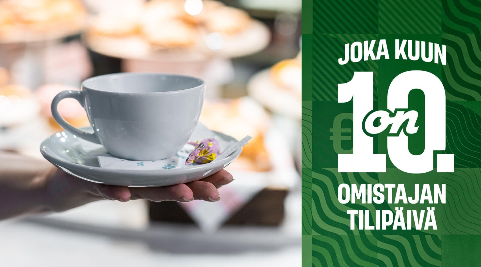 Huhtikuun Omistajan Tilipäivän S-mobiilietuna SSO:n kahviloissa on kuppi kahvia 1,50 €