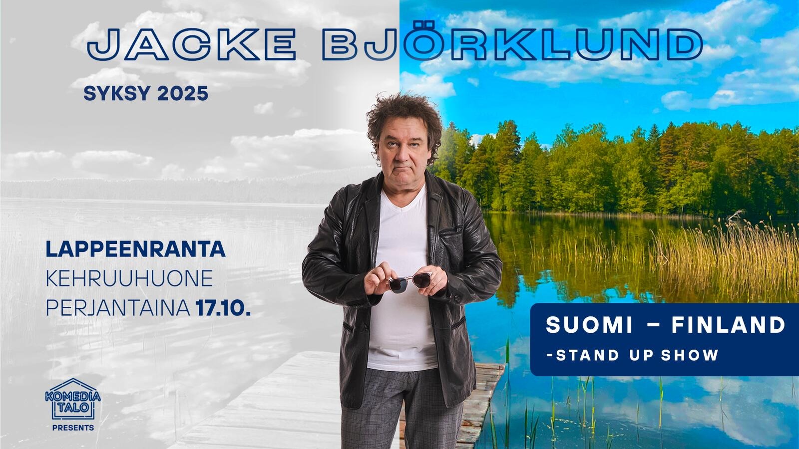 Hyvät naiset ja herrat, satiirin kuningas ja sarkasmin keisari jatkaa uusien juttujen kiertuetta syksyllä 2025! Jacke Björklundin uusi show Suomi - Finland kertoo meistä suomalaisista, asenteista, tavoista ja yhteiskunnastamme, miten me suhtaudumme eri asioihin.